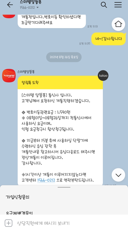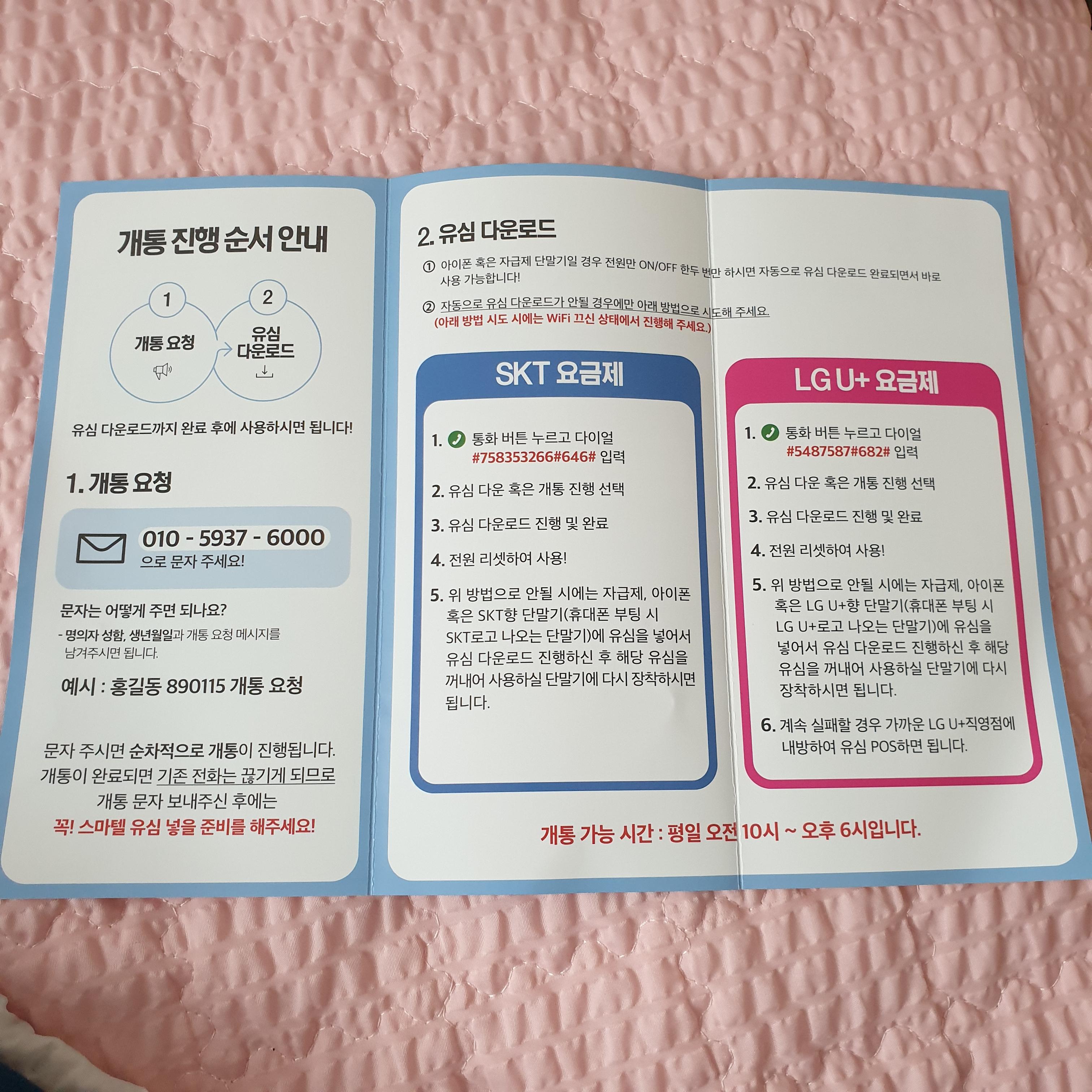 목요일에 개통 진행 연락이 와서 유심을 바꾸고